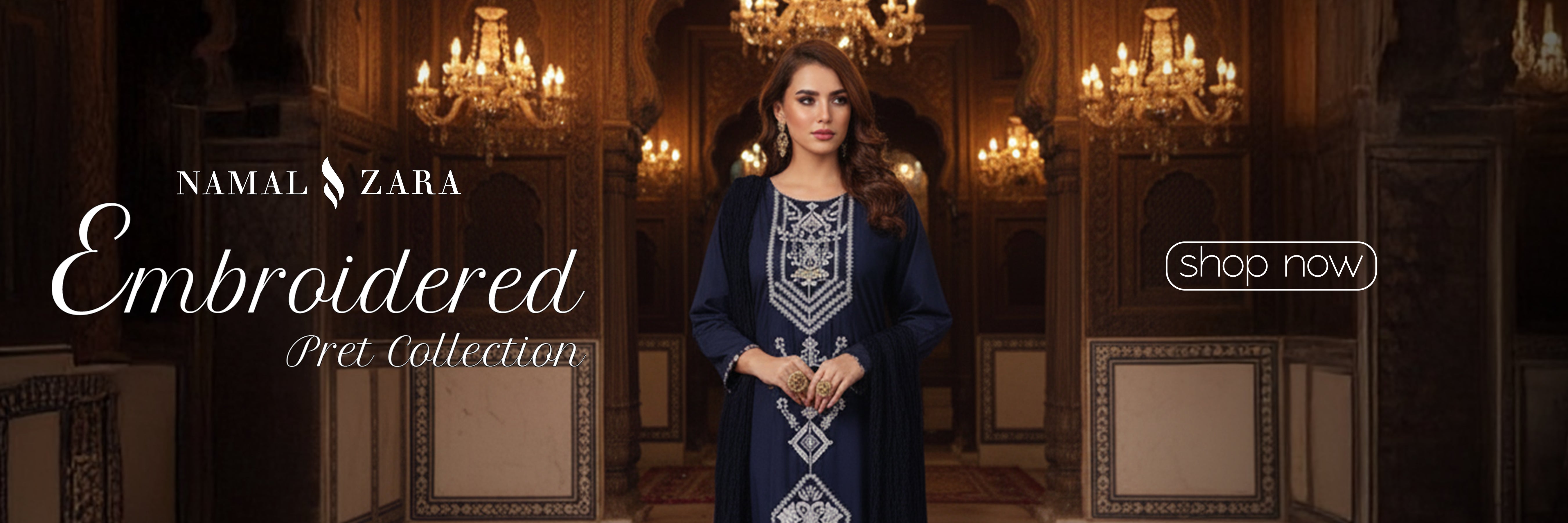 NZEC-1102<br> 3-Piece Embroidered Navy Blue Charm