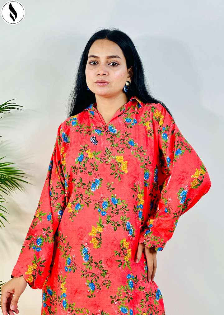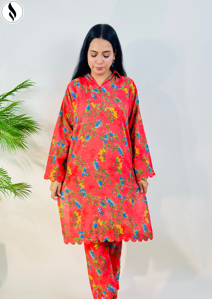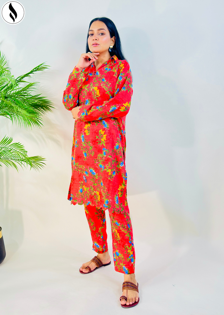 2 Piece Orange contast Co Ord Set Lawn