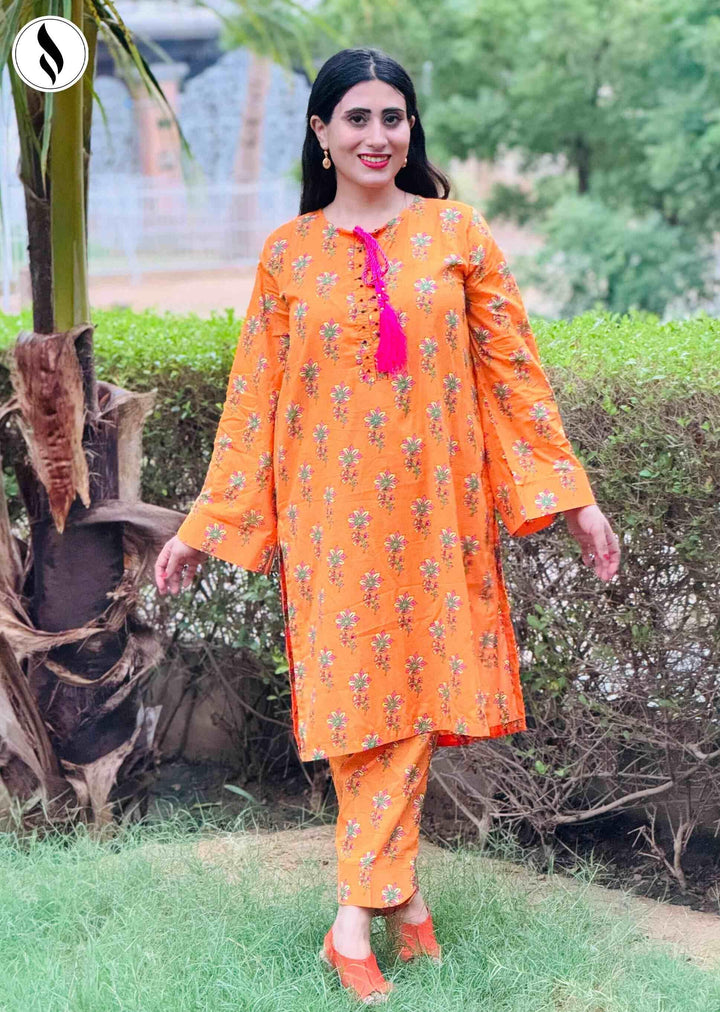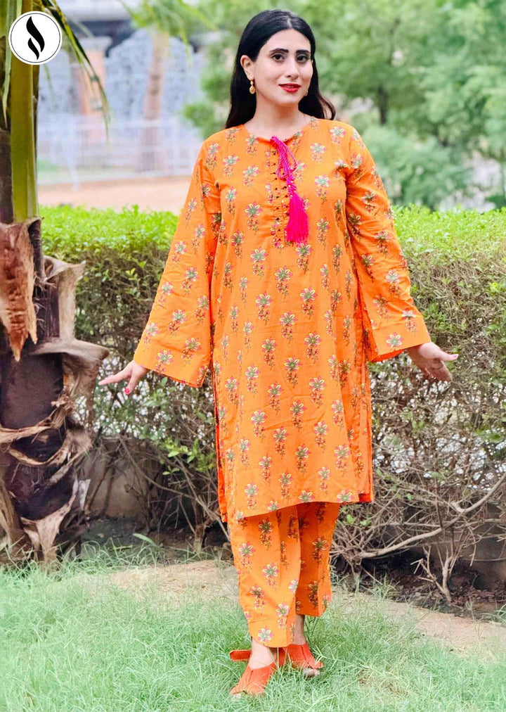 NZSC-602 Stiched 2 Piece yellow Rose Co Ord Set Lawn