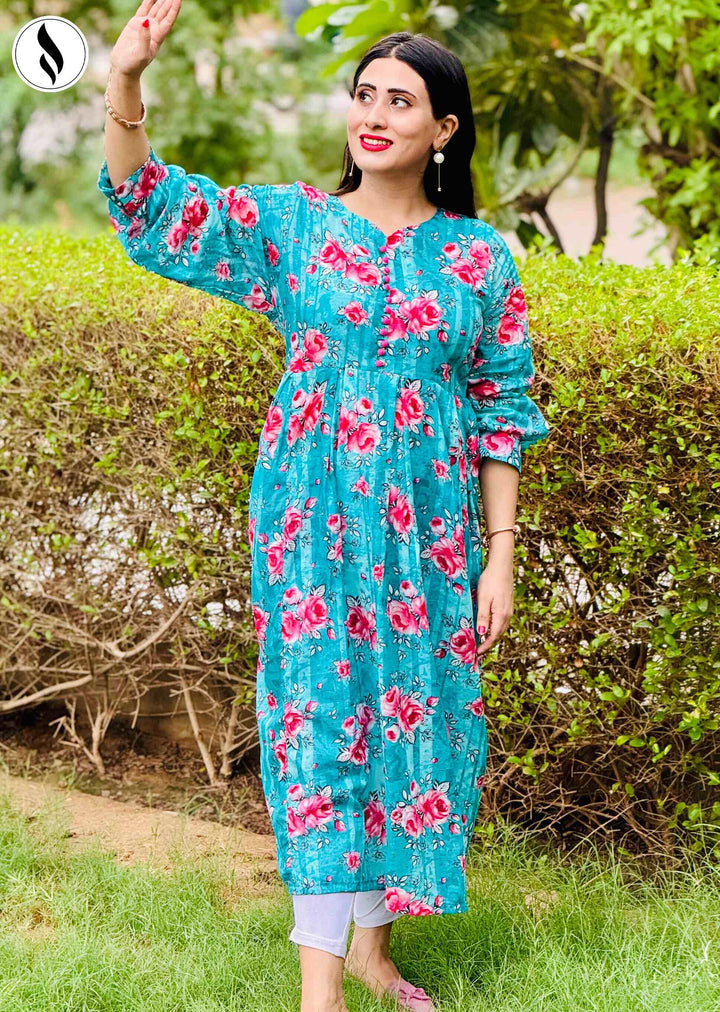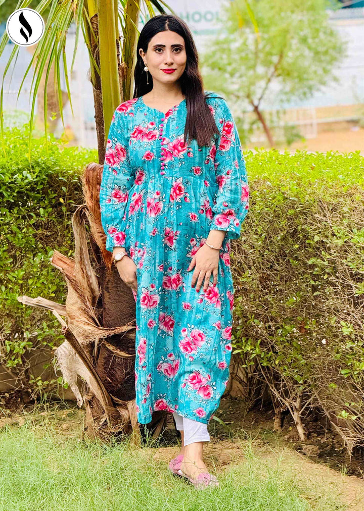 NZSC-620 Stitched 2 piece Seagreen With Rose Pattern Frock
