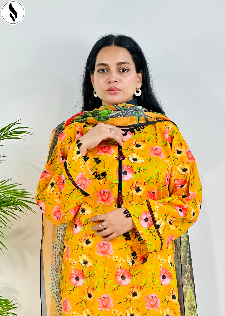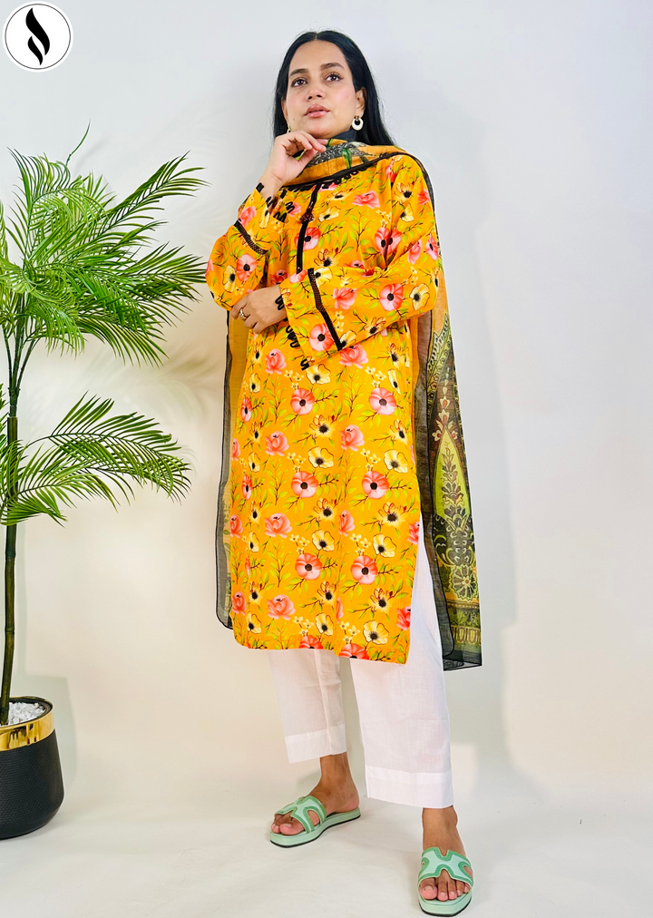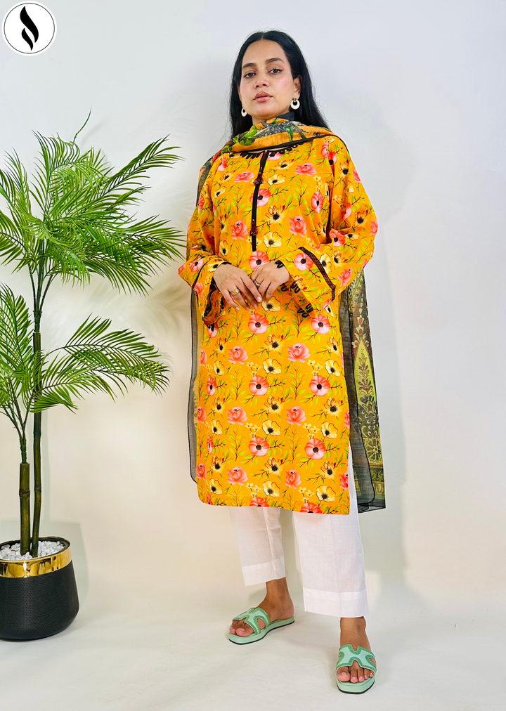 NZSC-712 Stitched 2 Piece Yellow Bloom (Shirt+Dupatta) Co Ord Set Lawn