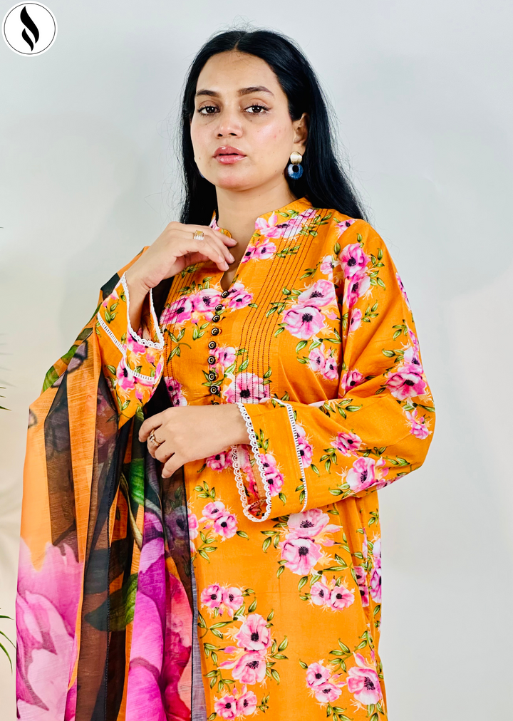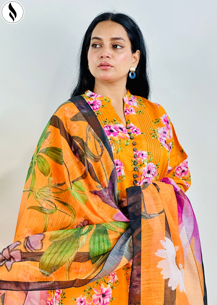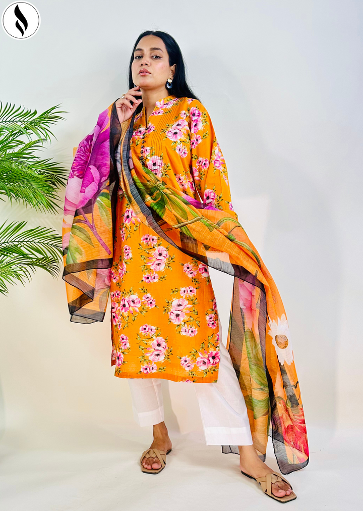 NZSC-715 Stitched 2 Piece Orange Bloom (Shirt+Dupatta) Co Ord Set Lawn