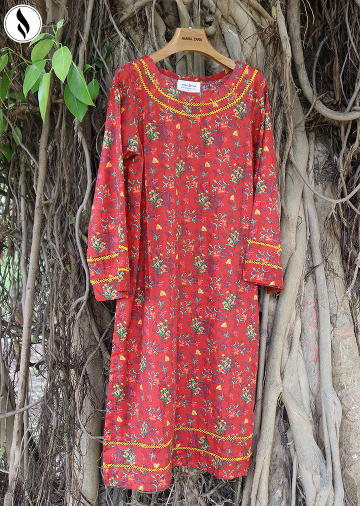NZSC-823 Stiched 2 Piece Dark Orange With Golden Lace Co Ord Set Lawn