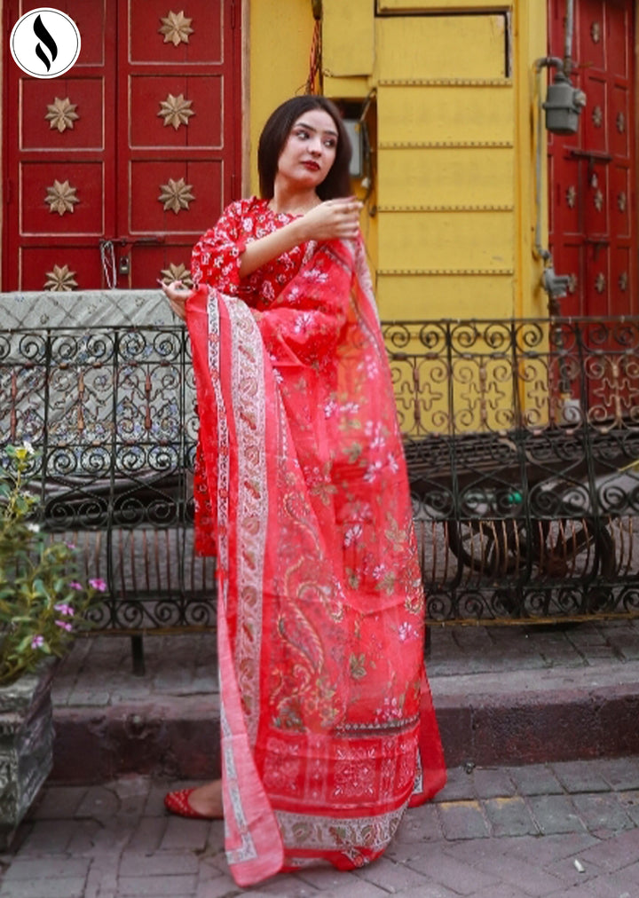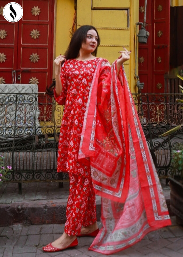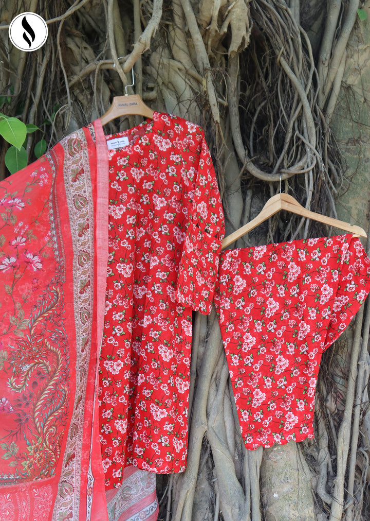 NZSC-907 Stitched 3 Piece Red Wonder Floral Co Ord Set Lawn