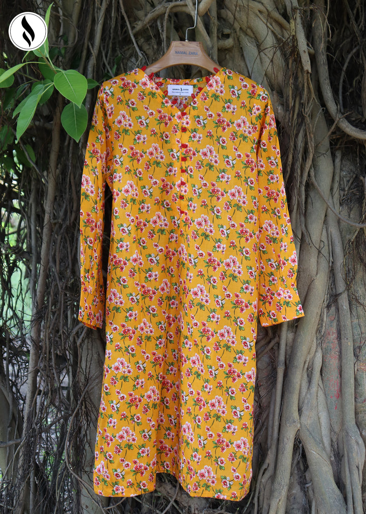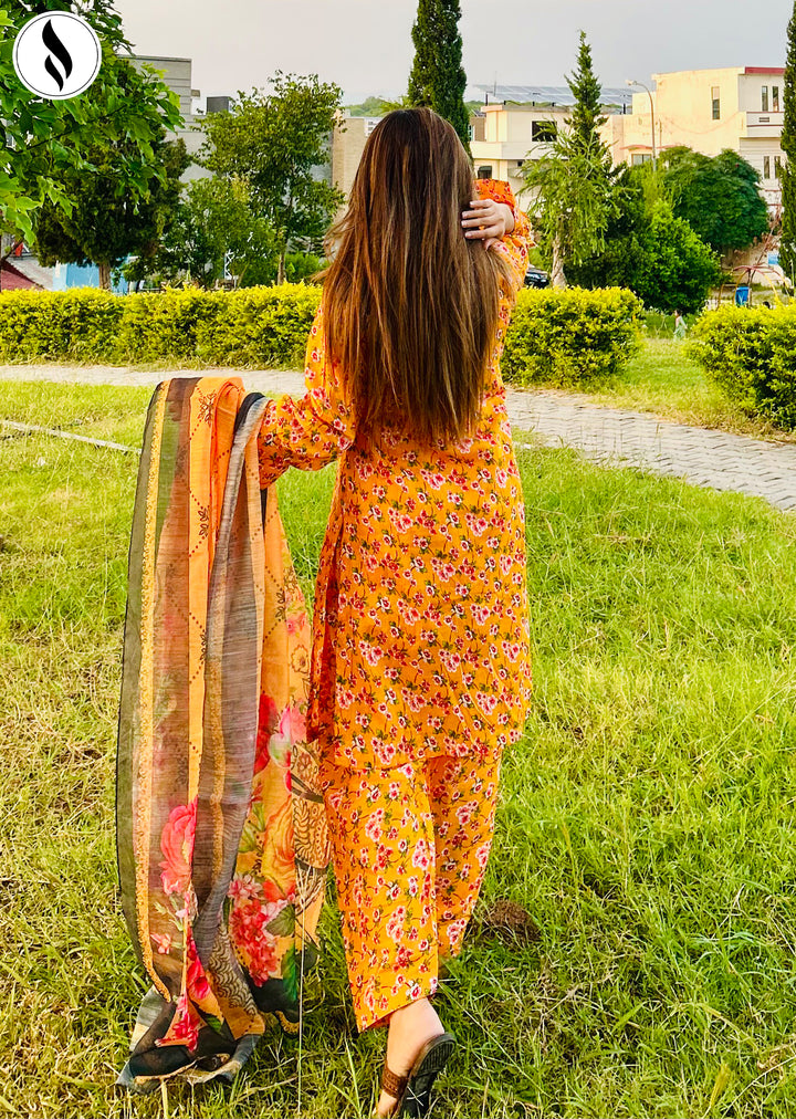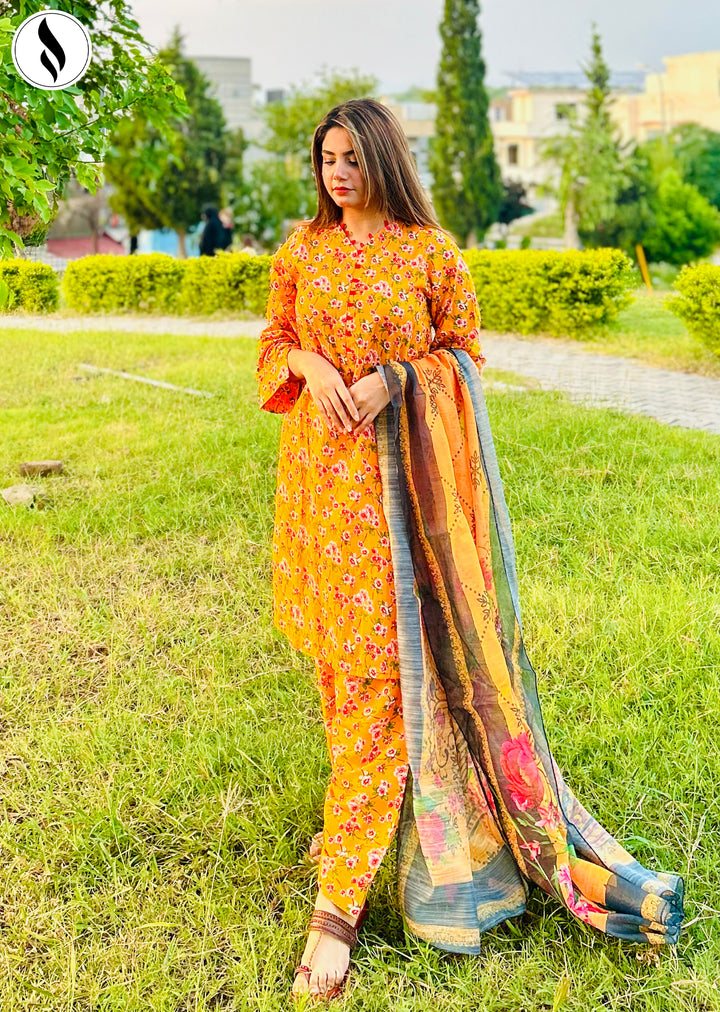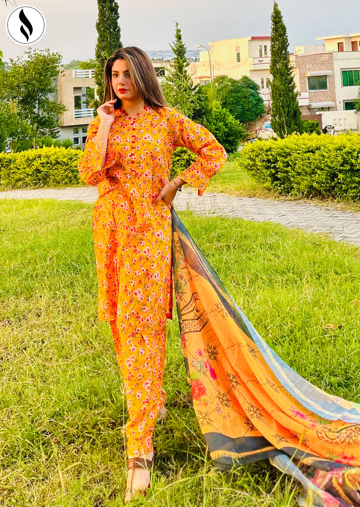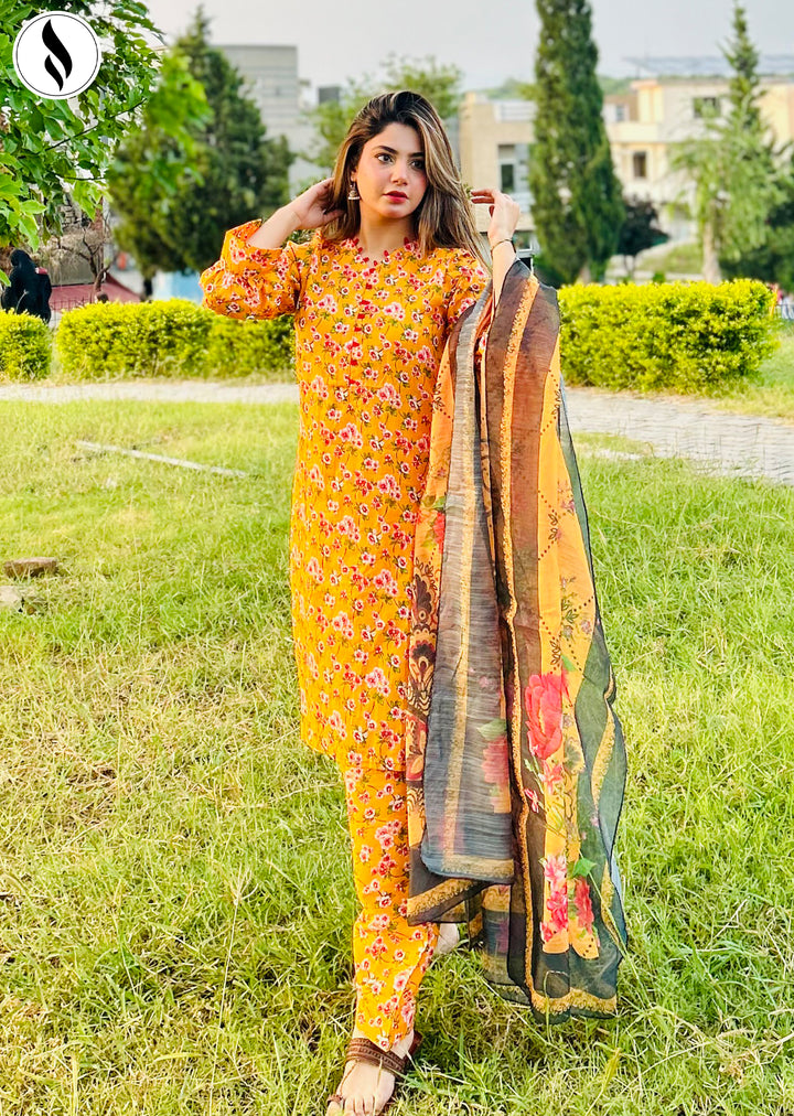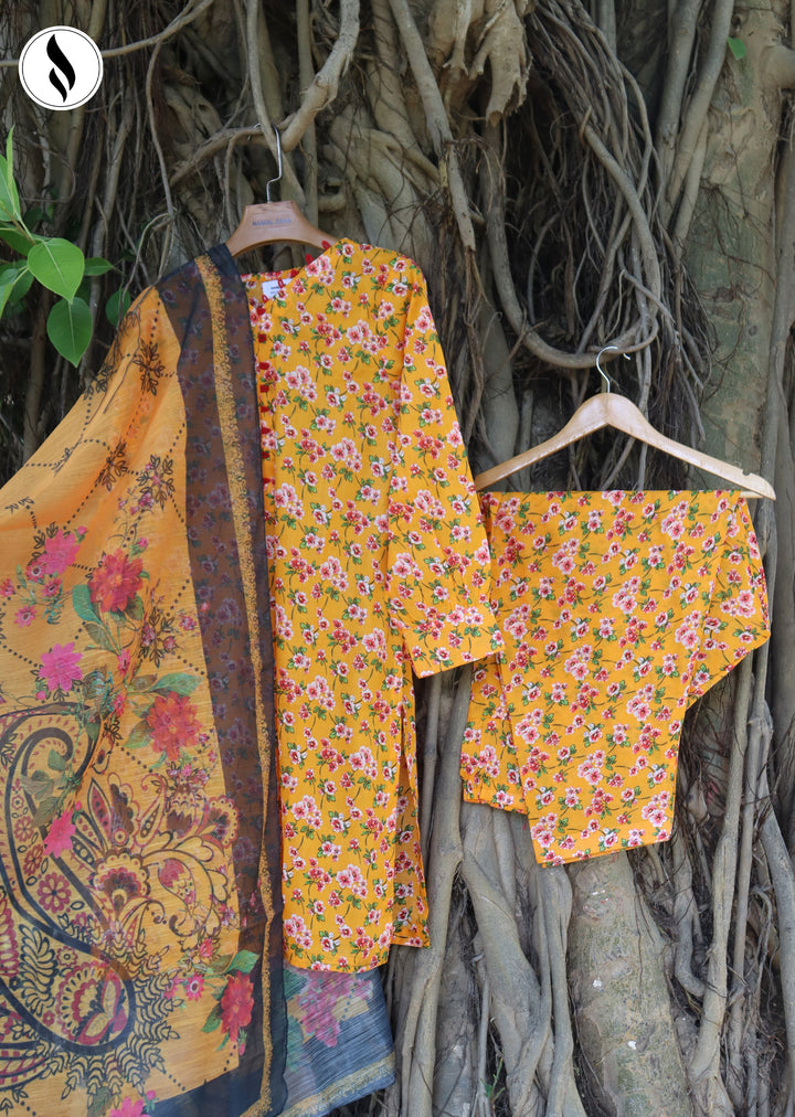 NZSC-908 Stitched 3 Piece Golden Mini Floral Co Ord Set Lawn