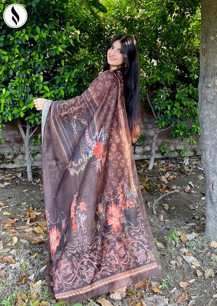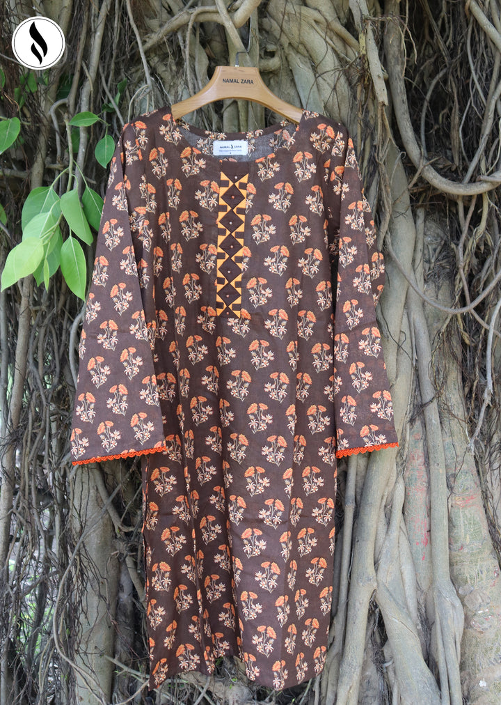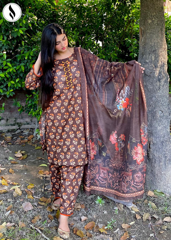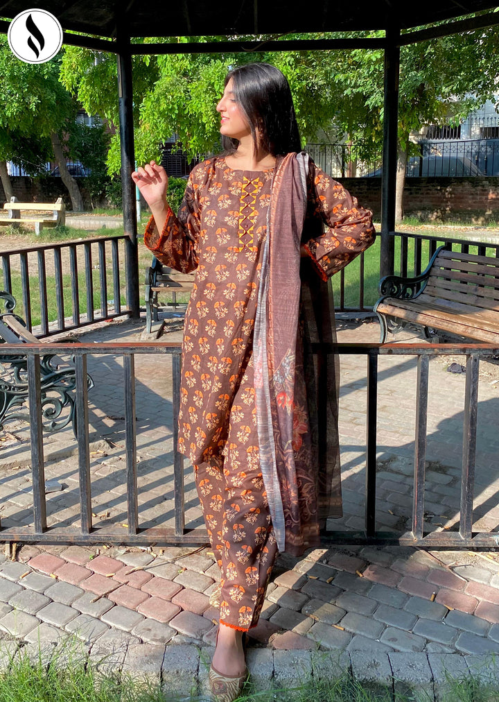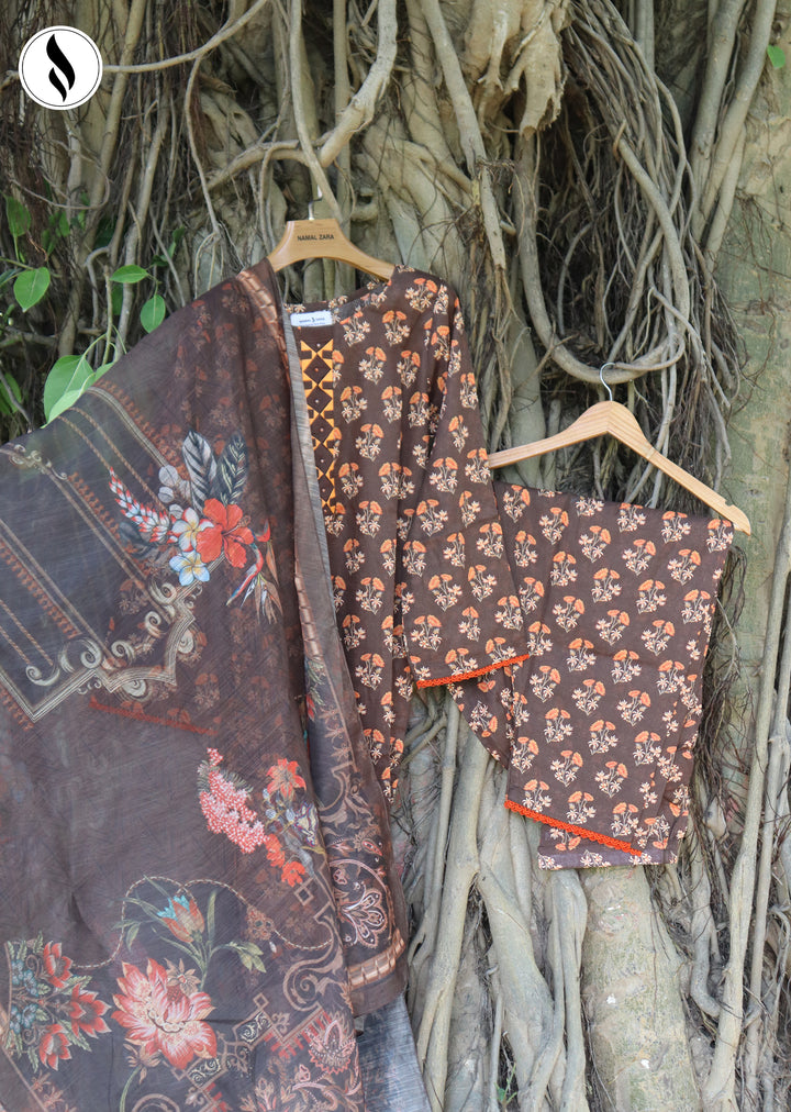 NZSC-910 Stitched 3 Piece Brownish Mini Floral Co Ord Set Lawn