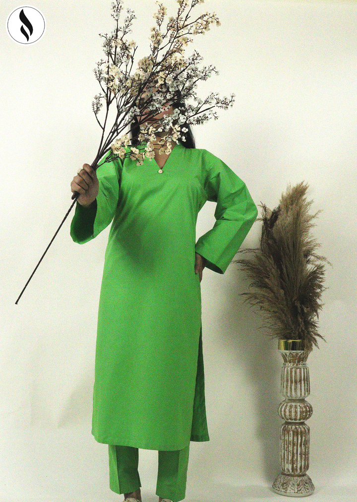 NZSC-1505 Stiched 2 Piece ligh green Co Ord Set Cotton