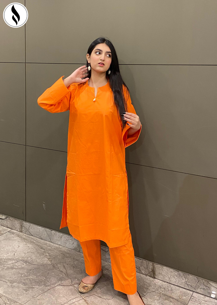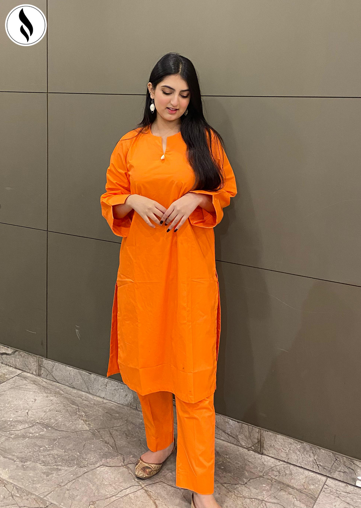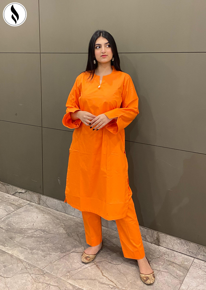NZSC-1506 Stiched 2 Piece orange Co Ord Set Cotton