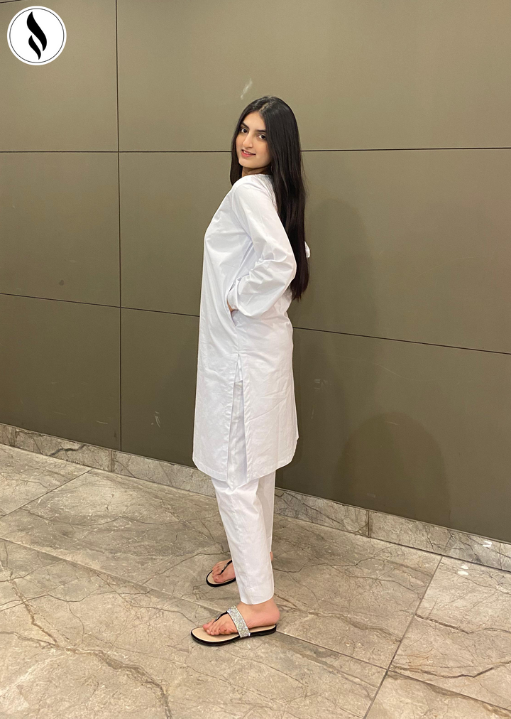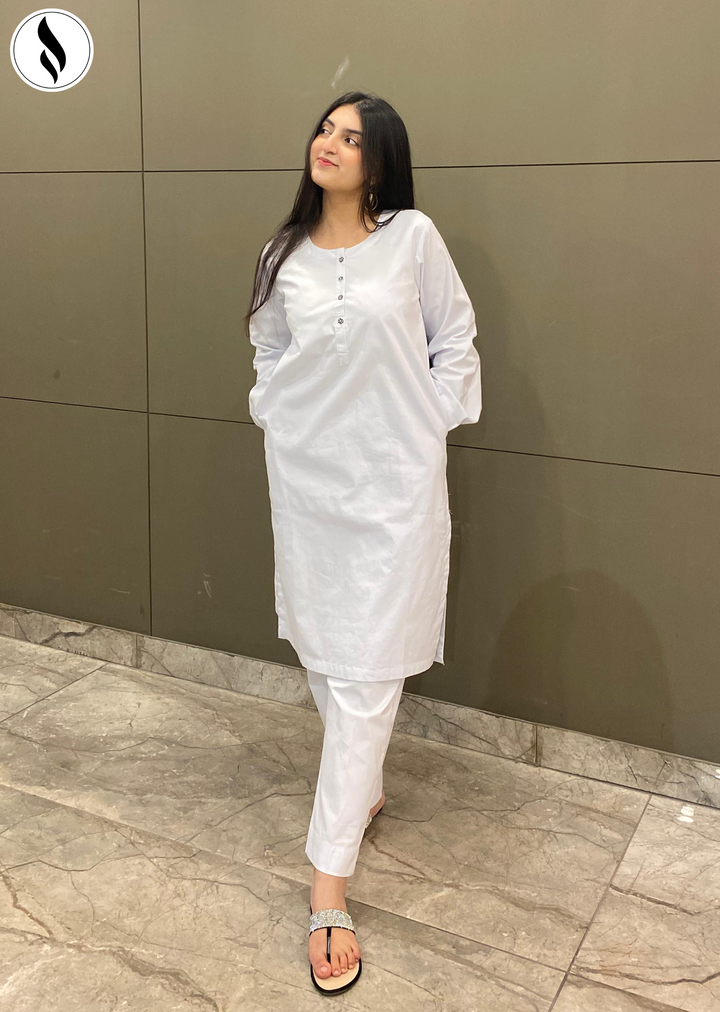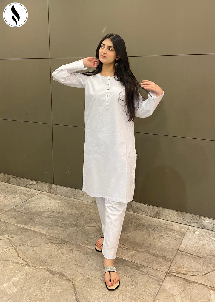 NZSC-1504 Stiched 2 Piece white Co Ord Set Cotton